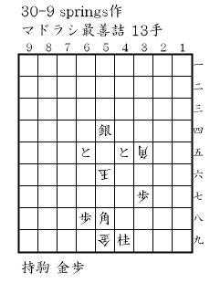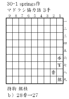 鑑賞室Web Fairy Paradiseフェアリー入門 第18回 アンチキルケ 超入門 出題 結果発表 第19回 レトロ協力詰 超入門 出題 結果発表 第20回 安南 超入門 出題 結果発表解1 解2 第21回 Queen 超入門 出題 結果発表 第22回 対面 超入門 出題 結果発表a) b) 第23回 Grasshopper 超入門 出題 結果発表 第24回 安北 超入門 出題 結果発表a) b) 第25回 Knight・Nightrider 超入門 出題 結果発表a) b)a) b)解1 解2 第26回 背面 超入門 出題 結果発表a) b) c)a) b) c) 第27回 Locust 超入門 出題 結果発表 第28回 天竺 超入門 出題 結果発表a) b) 第29回 Lion 超入門 出題 結果発表 第30回 マドラシ 超入門 出題 結果発表a) b) フェアリー版くるくる作品展 第14回 出題 結果発表 第15回 出題 結果発表 The Imitator on the Board(springs) 2024年6月 出題 結果発表 絨毯爆撃結果報告(springs) 裸玉+IM協力詰編 その1 発表 裸玉+IM協力詰編 その2 発表 裸玉+IM協力詰編 その3 発表 裸玉+IM協力詰編 その4 発表 YouTube夫婦de将棋 課題1「引越し」 動画 課題2「合駒がピンされたままスイッチバック」 動画 課題5 動画
