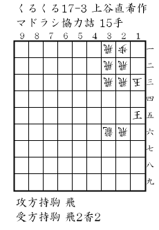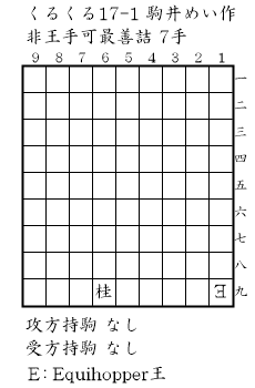 鑑賞室Web Fairy Paradiseフェアリー入門 第18回 アンチキルケ 超入門 出題 結果発表 第19回 レトロ協力詰 超入門 出題 結果発表 第20回 安南 超入門 出題 結果発表解1 解2 第21回 Queen 超入門 出題 結果発表 第22回 対面 超入門 出題 結果発表a) b) 第23回 Grasshopper 超入門 出題 結果発表 第24回 安北 超入門 出題 結果発表a) b) 第25回 Knight・Nightrider 超入門 出題 結果発表a) b)a) b)解1 解2 第26回 背面 超入門 出題 結果発表a) b) c)a) b) c) 第27回 Locust 超入門 出題 結果発表 第28回 天竺 超入門 出題 結果発表a) b) 第29回 Lion 超入門 出題 結果発表 第30回 マドラシ 超入門 出題 結果発表a) b) 第31回 Isardam 超入門 出題 結果発表 フェアリー版くるくる作品展 第14回 出題 結果発表 第15回 出題 結果発表 第16回 出題 結果発表 第17回 出題 結果発表 The Imitator on the Board(springs) 2024年6月 出題 結果発表 絨毯爆撃結果報告(springs) 裸玉+IM協力詰編 その1 発表 裸玉+IM協力詰編 その2 発表 裸玉+IM協力詰編 その3 発表 裸玉+IM協力詰編 その4 発表 YouTube夫婦de将棋 課題1「引越し」 動画 課題2「合駒がピンされたままスイッチバック」 動画 課題5 動画